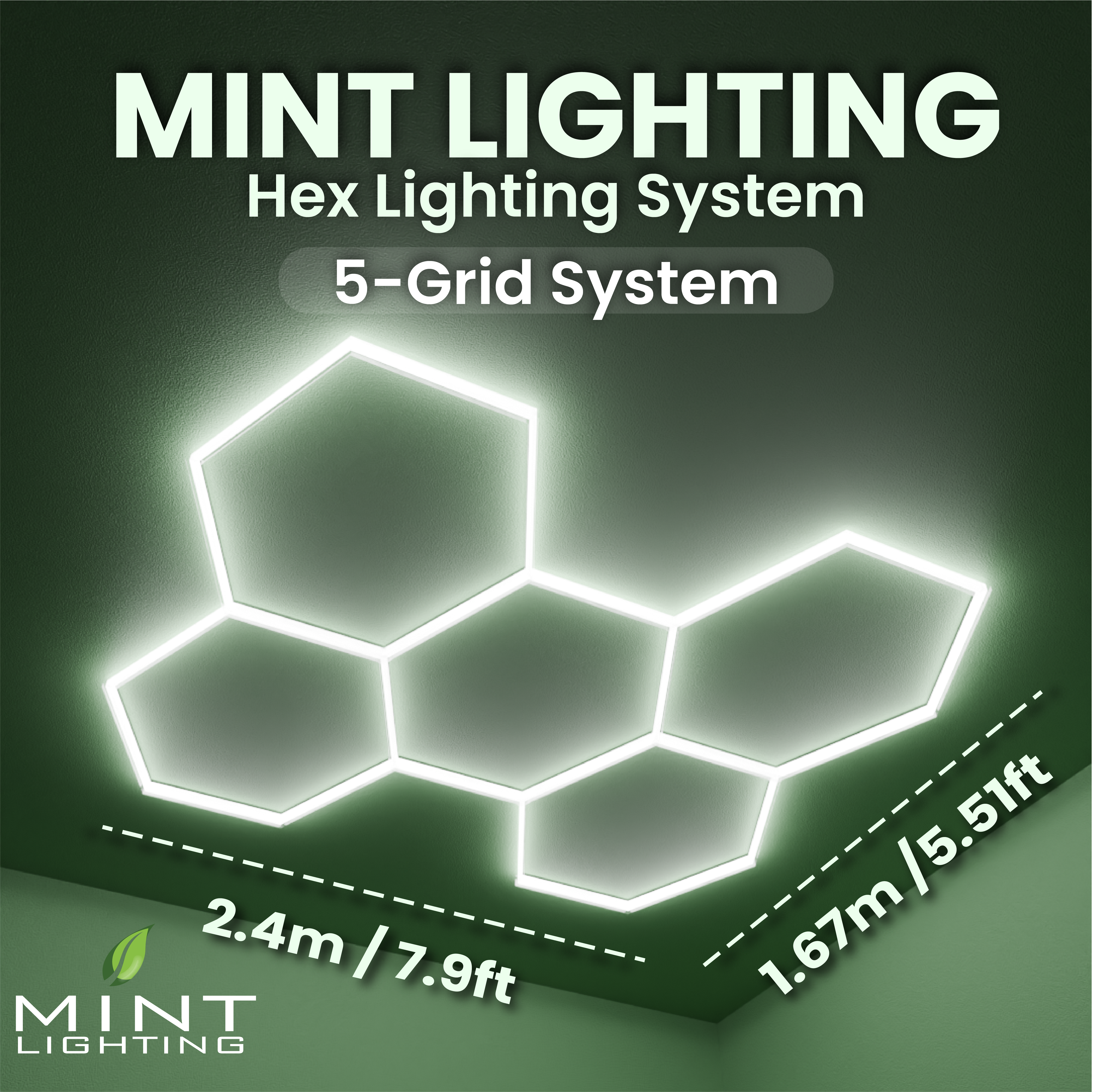 MINT LIGHTING | LED HEXGRID LIGHTING SYSTEM - 2.06m x 2.9m / 5.51ft x 7.95ft - 5 Grid